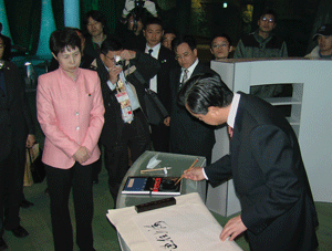 中国驻日本大使王毅在第一时间参观了中国馆。上午9点30分 ,王毅大使在爱知世博会中国政府代表高燕、副代表孙钢的陪同下,饶有兴趣地参观了中国馆。王毅大使积极评价中国馆的展示理念,他说:“中国馆的设计思路、展示水平和展出内容都是一流的。中国馆应该是整个世博会中最好的展馆。”在离开之前,王毅大使特别为中国馆题词:“从爱知通往上海,从亚洲迈向世界”。上海市副市长周禹鹏也在上午参观了中国馆。